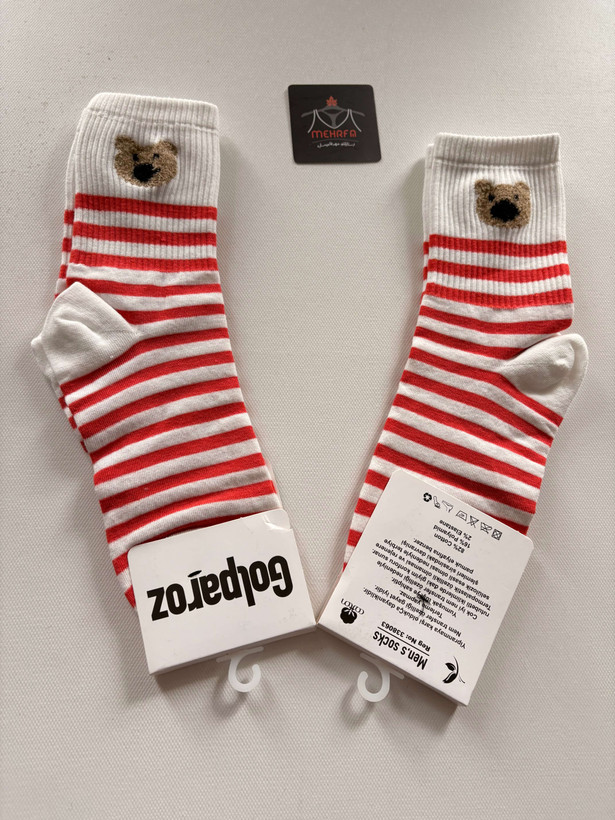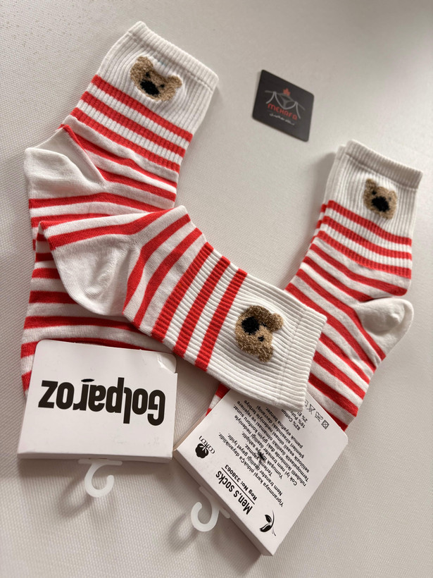 جوراب ساق دار خرسی راه راه تدی هم برای بانوان و آقایان فانتزی پسند انتخاب خوبیه و کار شیکی هست
